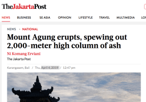 Mount Agung, the highest mountain on Bali, erupted early morning on Thursday (April 4), spewing out a massive column of smoke and ash 2,000 meters high, causing panic among residents praying at a local temple.